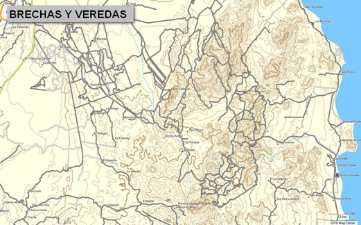 Contiene un increíble detalle de Caminos Rurales ya que se trazaron mas del 80% de las Brechas, Terracerías y Veredas de todo el estado.