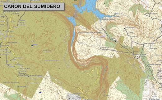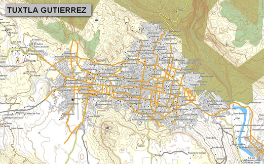 El mapa del estado de CHIAPAS incluye la ciudad de Tuxtla Gutierrez con calles y avenidas con nombre, mismas que usted pordrá