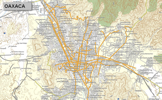 El mapa del estado de OAXACA incluye todas las ciudades con calles y avenidas con nombre, mismas que usted pordrá buscar en su gps ingresando datos como: estado, ciudad, calle ó cruce de calles.