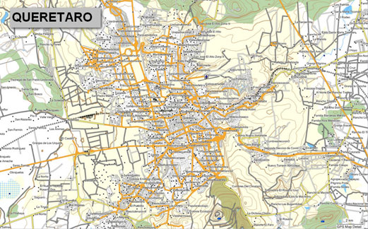 El mapa del estado de QUERÉTARO incluye todas las ciudades con calles y avenidas con nombre,