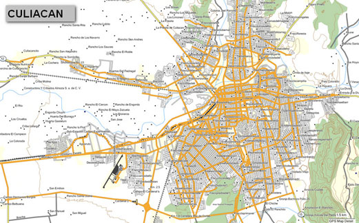 El mapa del estado de SINALOA incluye todas las ciudades con calles y avenidas con nombre,