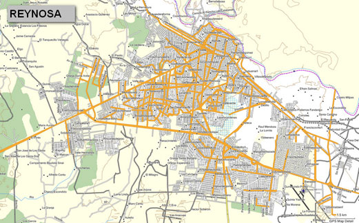 El mapa del estado de TAMAULIPAS incluye todas las ciudades con calles y avenidas con nombre,