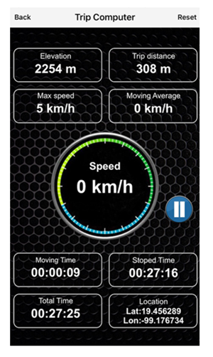 The trip computer shows your general stats since you installed the app or since your last reset. Among these stats are the elevation, the trip distance, what has been the maximum speed, moving average, the time of movement and the time you are still, your total time and shows you the latitude and longitude.