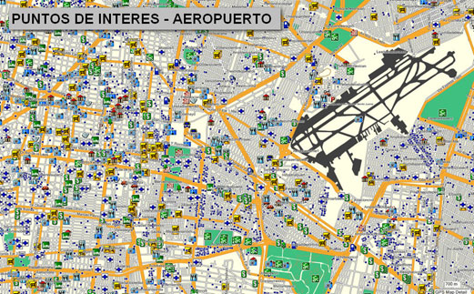 Railroad tracks- Cities - Towns - Neighborhoods - Ranches - Airports - Contour lines every 30 mts - Hill names- Points of interes t- Rivers -