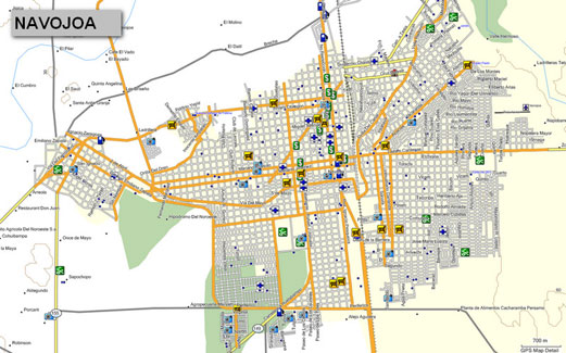 Railroad tracks- Cities - Towns - Neighborhoods - Ranches - Airports - Contour lines every 30 mts - Hill names- Points of interes t- Rivers -