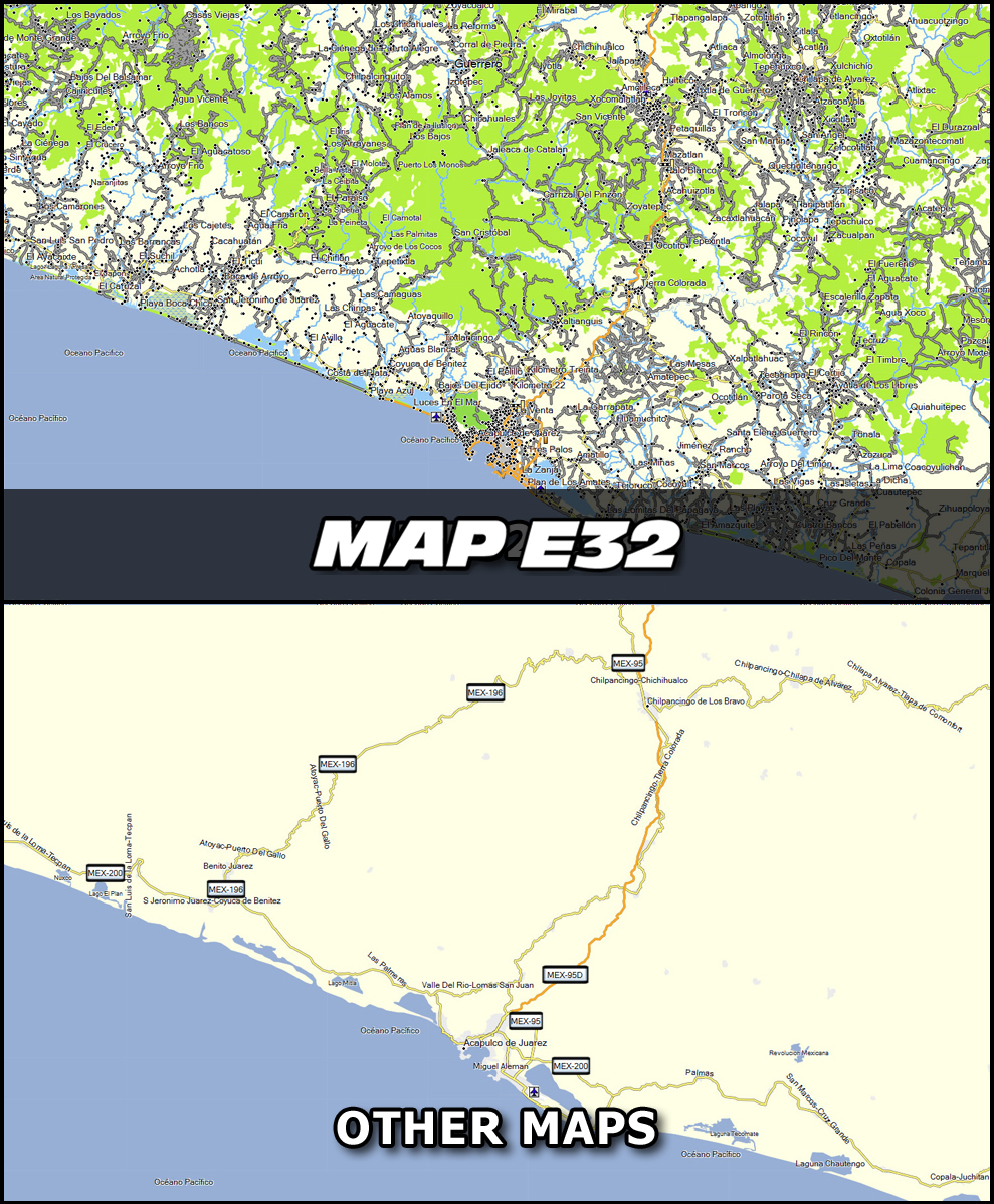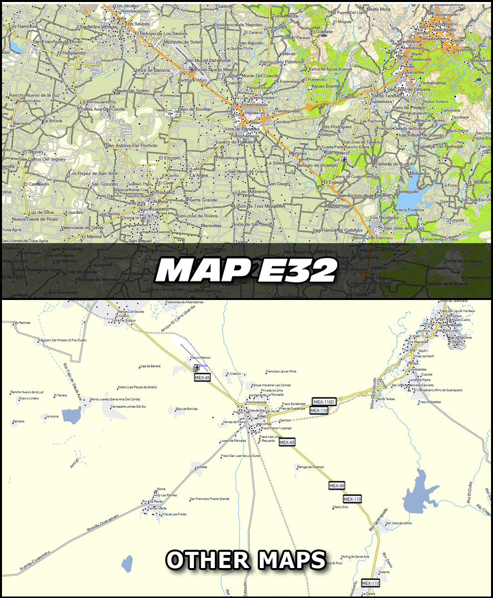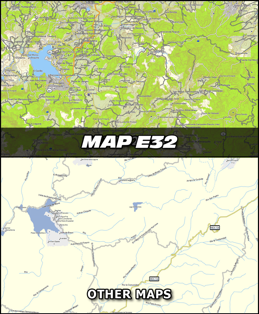 This is how Map E32 looks compared to other maps in the market. Click on the images to view a larger version: