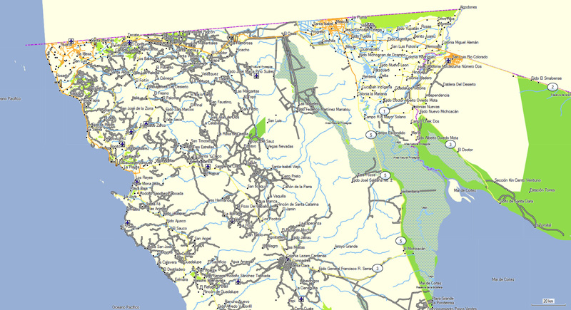 Detailed maps of Baja California, including cities and points of interest such as Mike’s Sky Ranch.